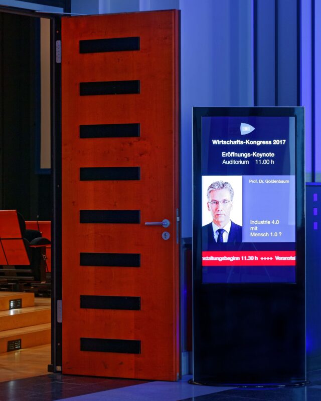 Es gibt verschiedene Anwendungsmöglichkeiten. Auf Messen als Werbetafel oder als Aussteller um Produkte zu Präsentieren. Bei Kongressen als Besucherleitsystem oder zur Darstellung des Programmplans. Die Medienstele kann interaktiv genutzt werden. Genauso als Digital Signage Anzeigegerät. Mit der Info-Stele kann kreativ gearbeitet werden.